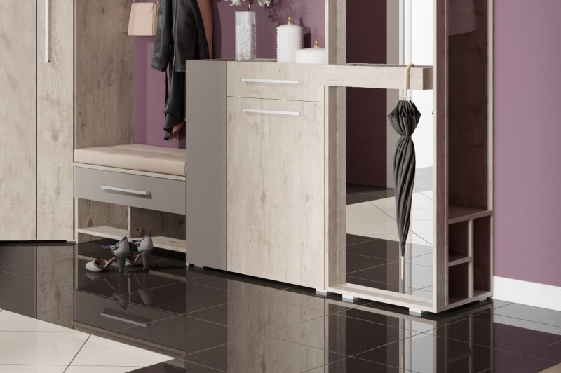 - модели, совмещенные с зеркалом, могут играть роль туалетного столика, особенно если всю косметику расположить на столешнице и/или в верхнем ящике;