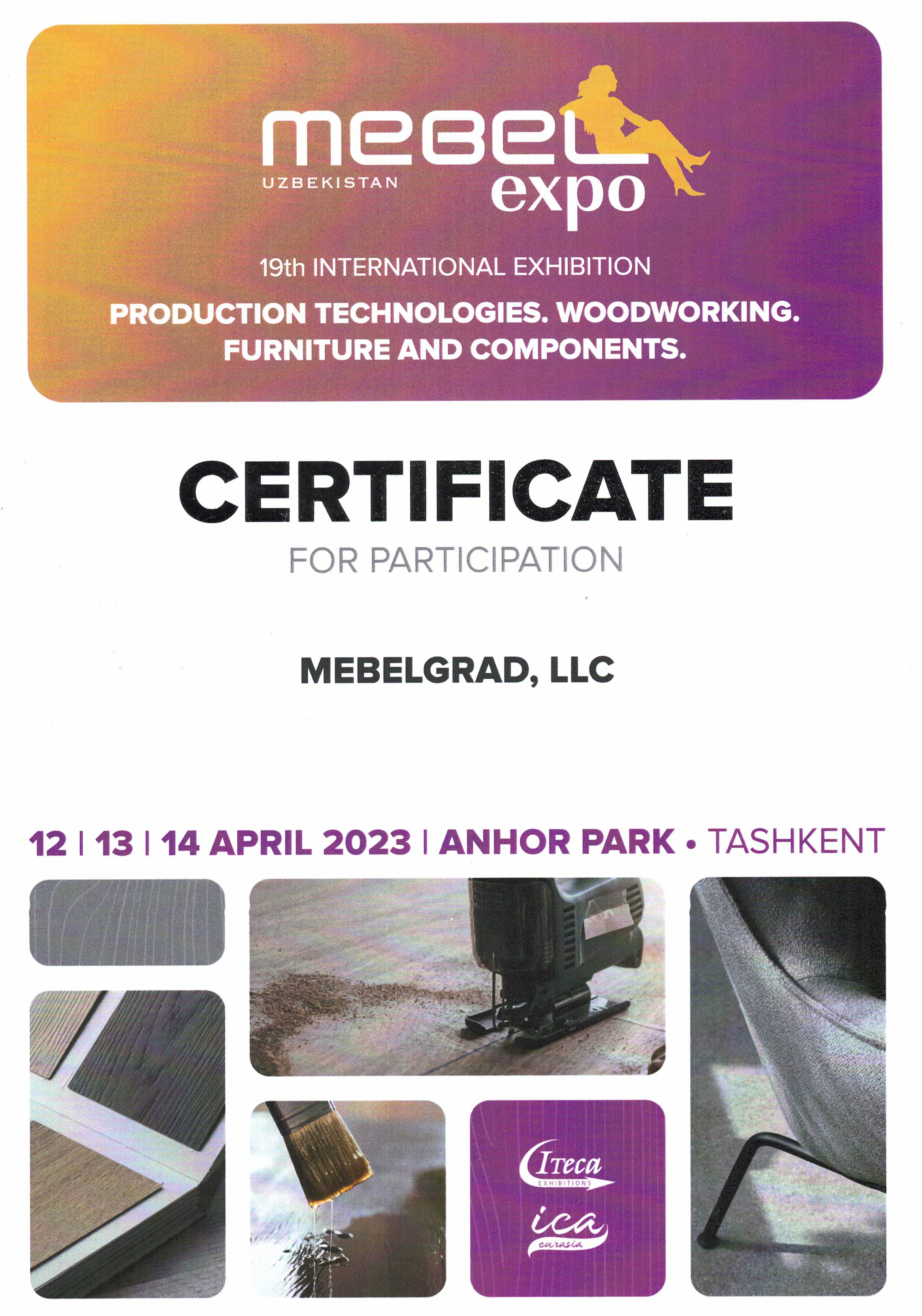 С 12-14 апреля мебельная фабрика «Мебельград» приняла участие в 19-й международной выставке «MebelExpo Uzbekistan 2023. Технологии производства. Деревообработка. Мебель и комплектующие» в Ташкенте.