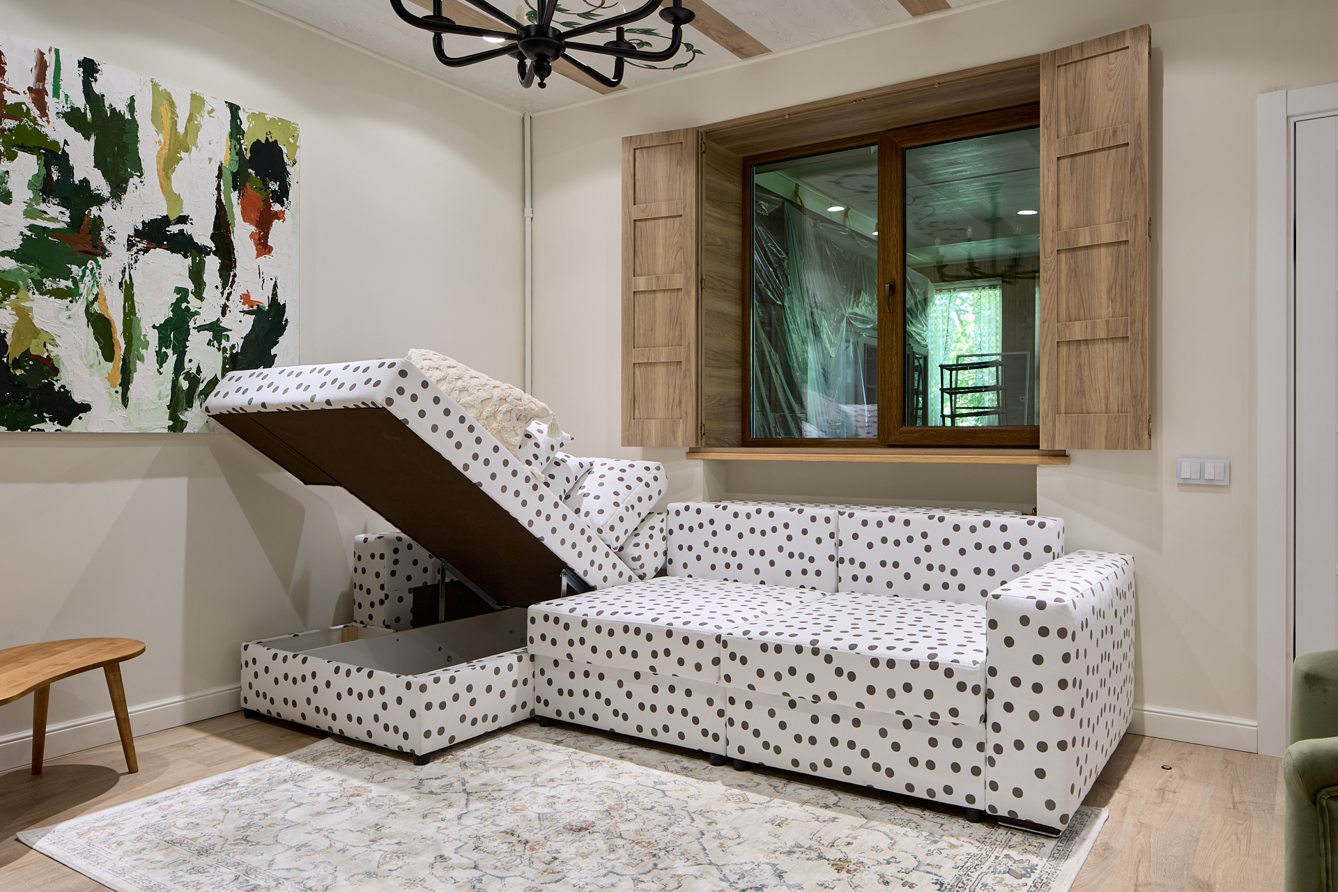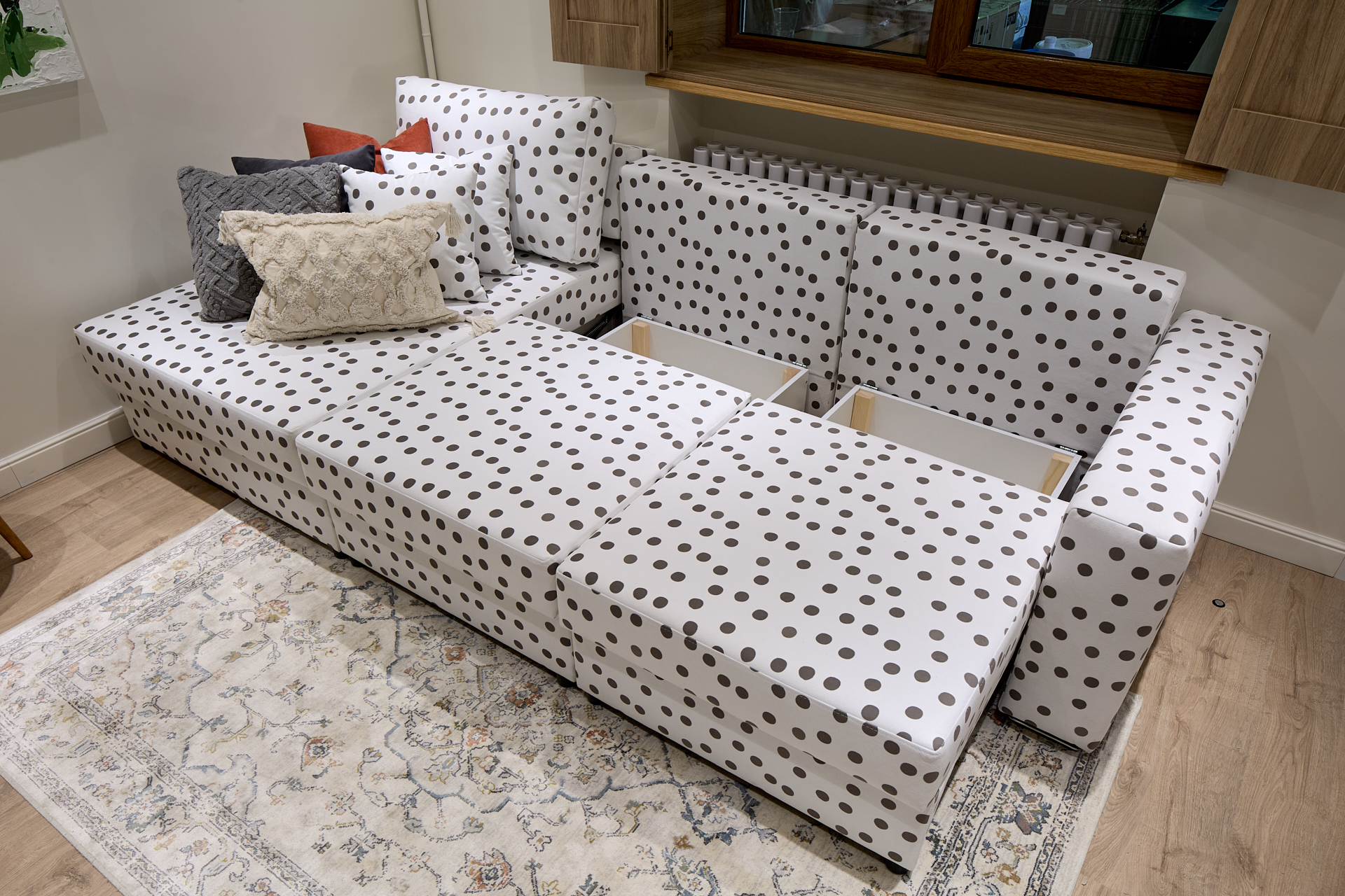 В угловом диване «Неаполь 2» имеется вместительный ящик для хранения, а в основании спального места - блок независимых пружин Pocket.