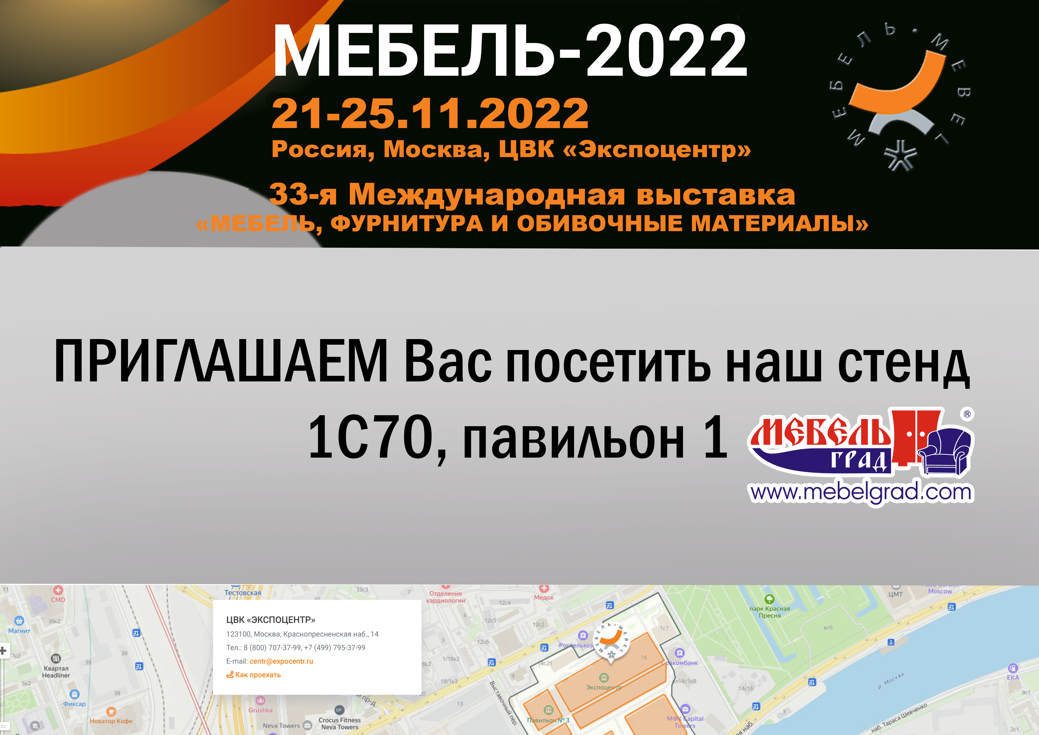 Приглашаем Вас посетить наш стенд на выставке Мебель-2022 с 21 по 25 ноября 2022 г в Экспоцентре, г.Москва