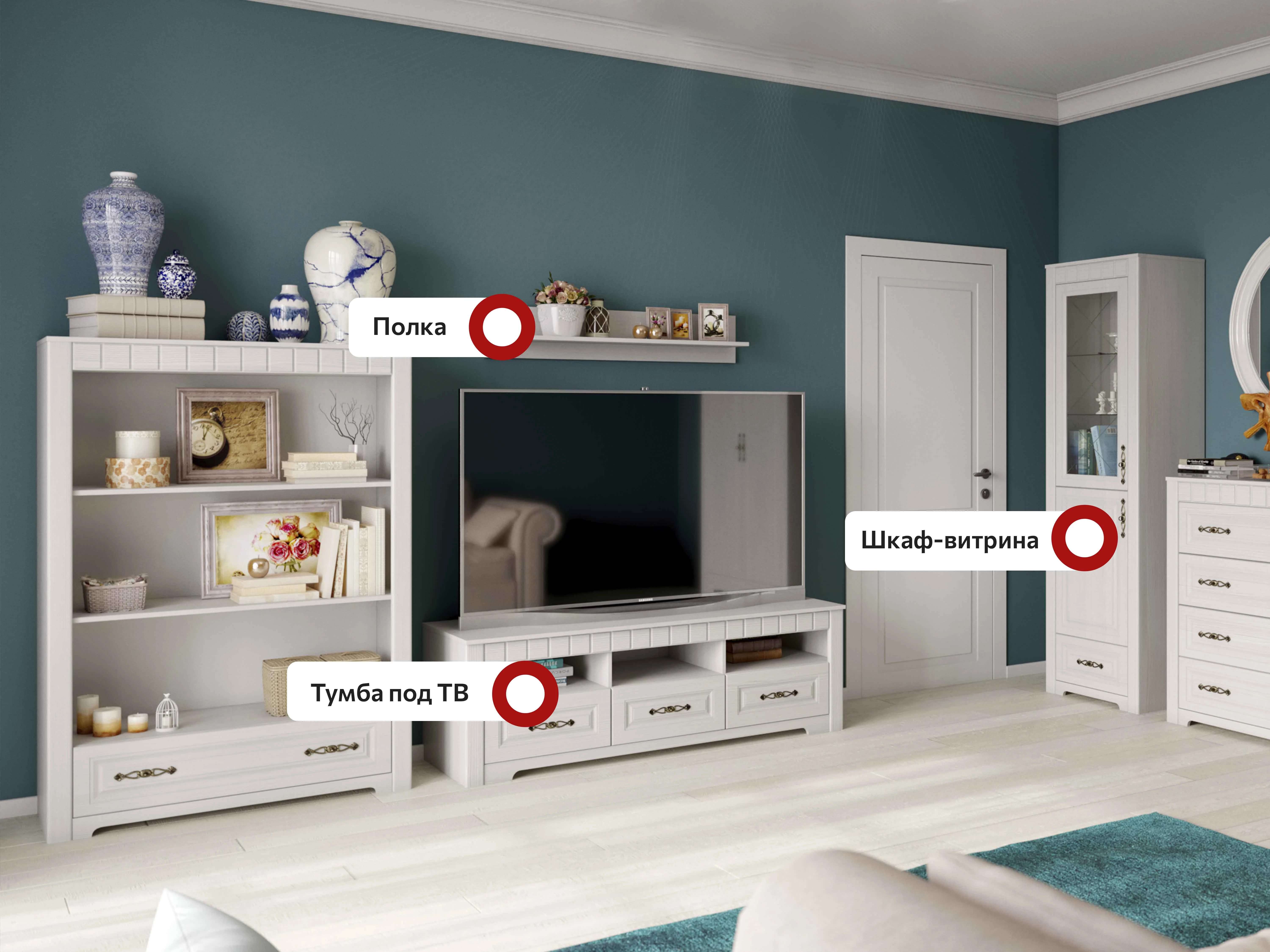 Модульная гостиная “Прованс” - это прекрасное решение для тех, кто хочет создать уютную и теплую атмосферу в своем доме. Она выполнена в стиле прованс, который характеризуется использованием натуральных материалов и светлых оттенков.