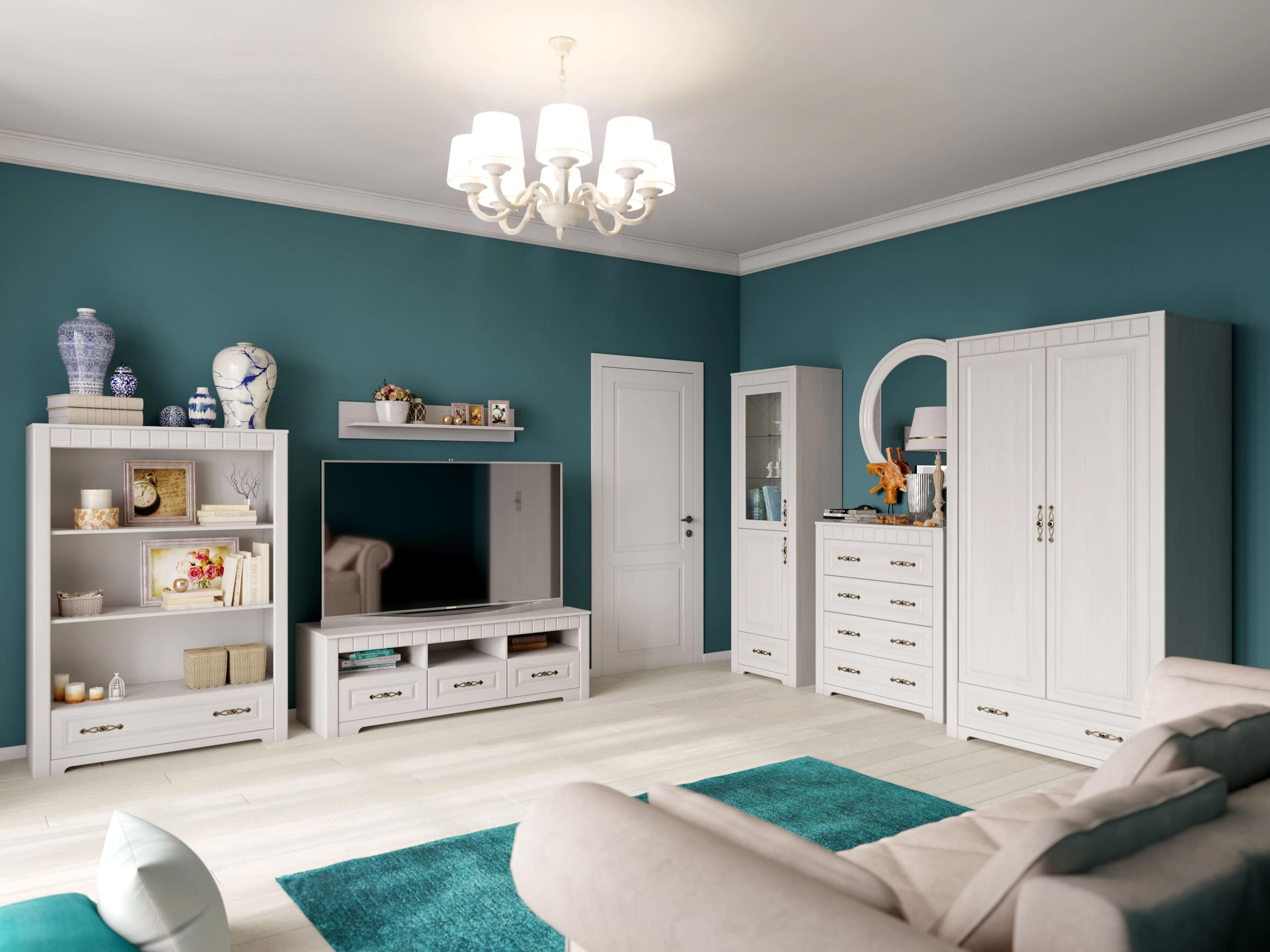 Модульная гостиная “Прованс” - это прекрасное решение для тех, кто хочет создать уютную и теплую атмосферу в своем доме. Она выполнена в стиле прованс, который характеризуется использованием натуральных материалов и светлых оттенков.
