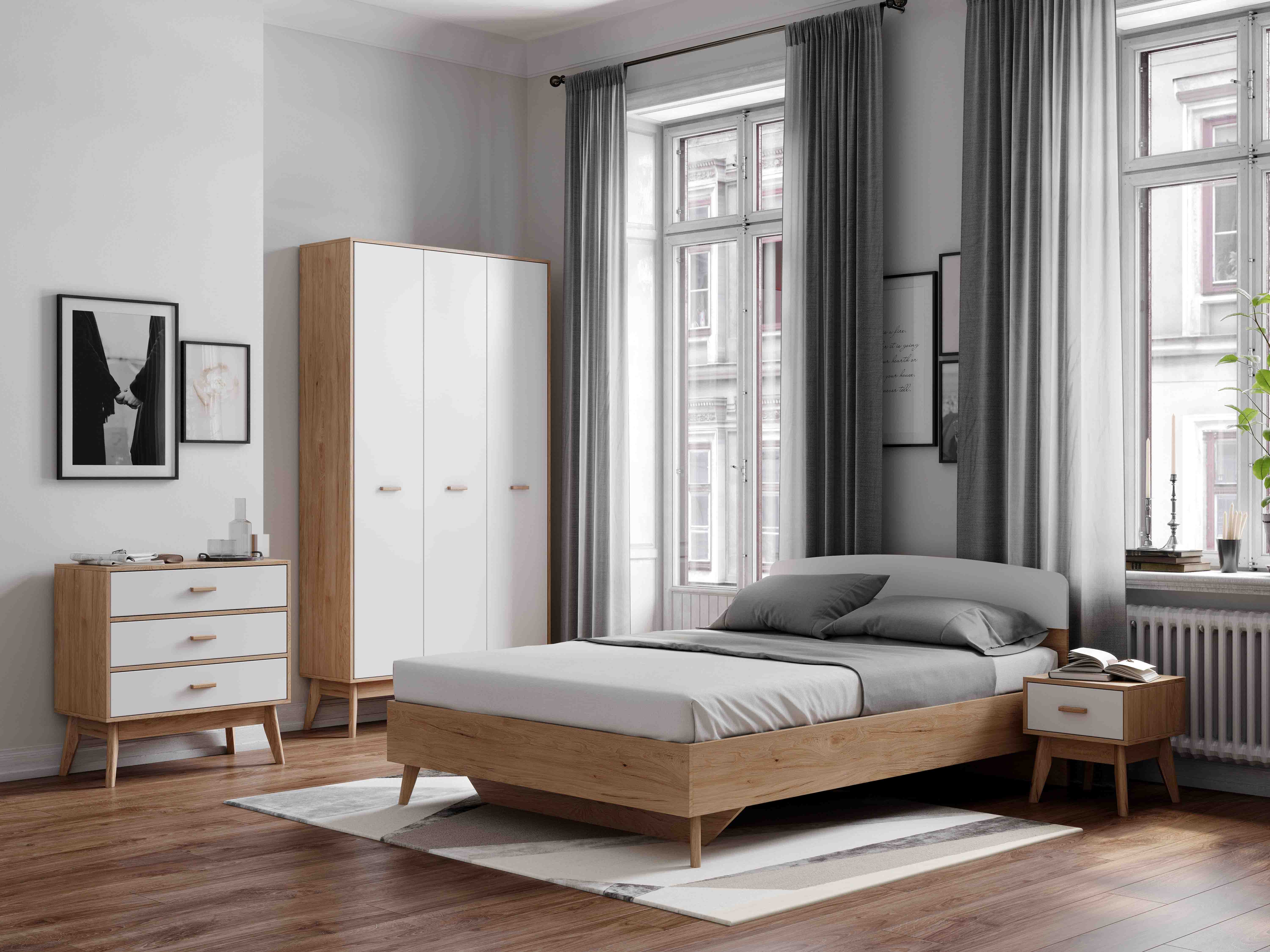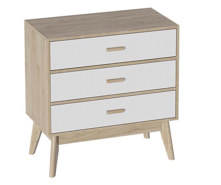 Привлекающий внимание легкостью и комфортом в использовании, комод "Калгари" не только украсит Ваш любимый скандинавский интерьер, но и порадует своей функциональностью. Каркас комода изготовлен из ЛДСП в цвет натурального дуба, фасады ящиков – из МДФ белого матового цвета, стильные и устойчивые ножки - из массива березы.
