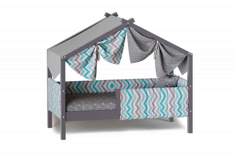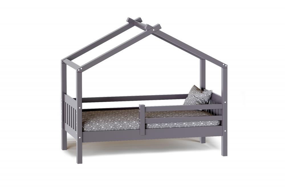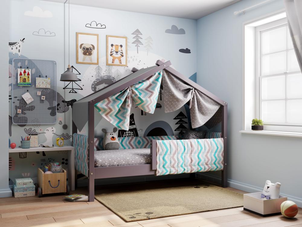 Каркас укомплектован основанием из поперечных гнутых ламелей. Головная и ножная спинки соединены стропилами, образующими крышу: если дополнить кроватку текстильными аксессуарами в виде балдахина и мягких бортиков, малыш будет ощущать себя в собственном уютном домике. В комплектацию кровати входит ортопедическое основание из гнутоклееных ламелей.