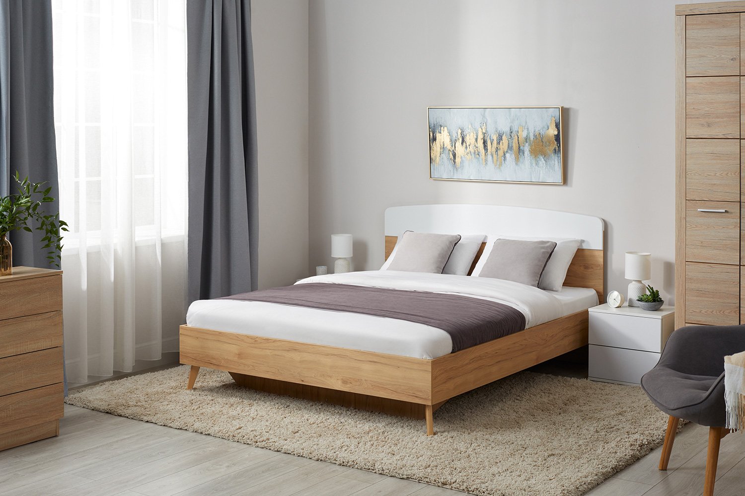 Двуспальная кровать "Калгари", выполненная в скандинавском стиле, станет гармоничной деталью интерьера спальни. Модель отличается простой и надежной конструкцией, в спокойных естественных тонах, без обилия декоративных элементов, со скругленными углами изголовья.