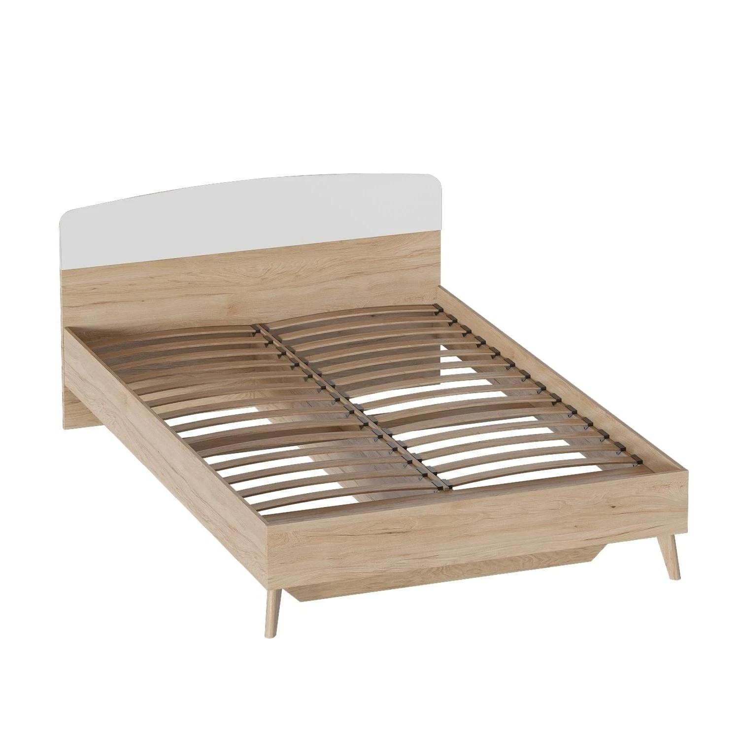Корпус изготовлен из ЛДСП толщиной 16 мм в цвет натурального дуба, белая накладка в изголовье - из МДФ толщиной 16 мм. Опоры сделаны из натурального массива березы. Высота опор 25 см. Высота спального места 38 см. Рекомендуемая высота матраса 16-25 см. В комплект кровати входит прочное ортопедическое основание на березовых ламелях. Максимальная нагрузка на одно спальное место составляет 150 кг.