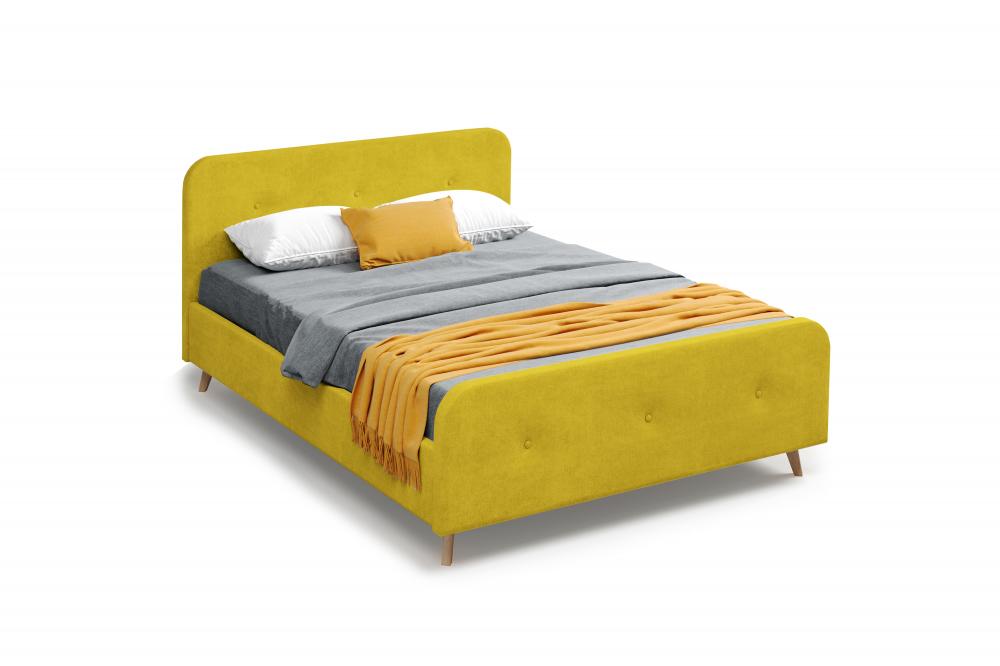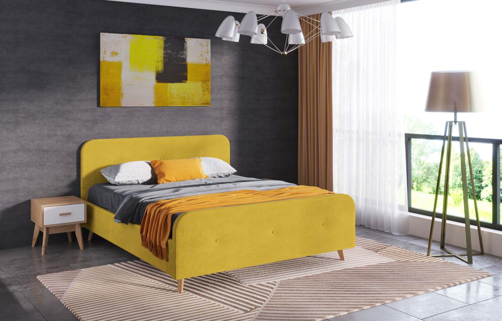 Изголовье имеет закругленный силуэт, обтянут велюровой тканью с пуговицами, что обеспечивает дополнительную мягкость и уют. Высокие стильные ножки из массива березы создадут ощущение легкости и воздушности.