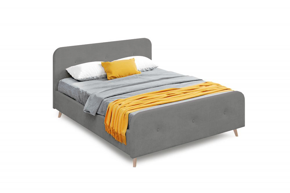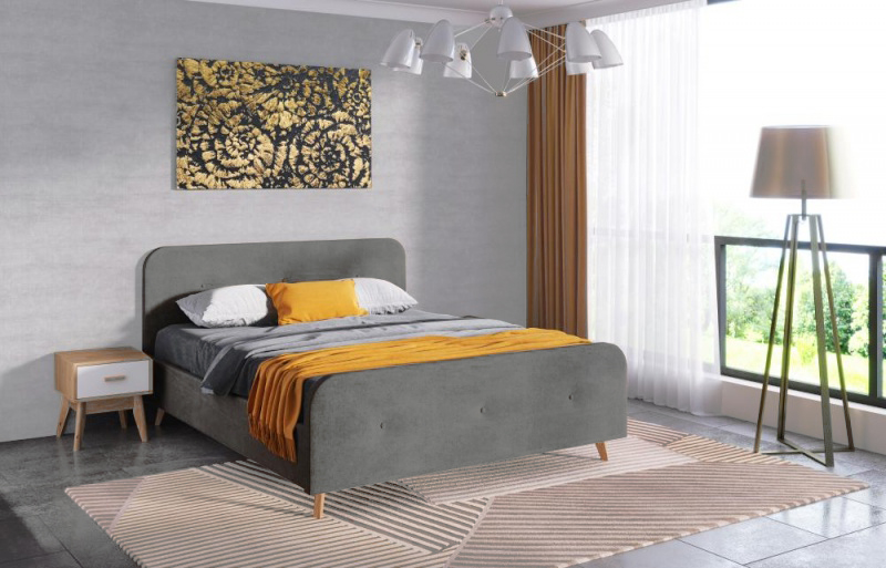 Изголовье имеет закругленный силуэт, обтянут велюровой тканью с пуговицами, что обеспечивает дополнительную мягкость и уют. Высокие стильные ножки из массива березы создадут ощущение легкости и воздушности.