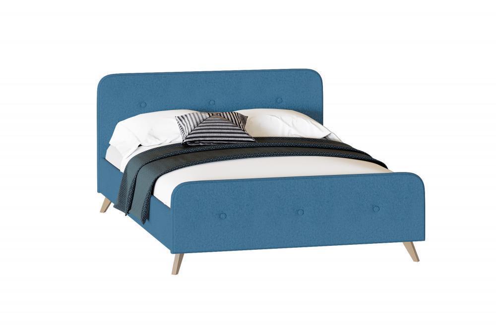 Изголовье имеет закругленный силуэт, обтянут велюровой тканью с пуговицами, что обеспечивает дополнительную мягкость и уют. Высокие стильные ножки из массива березы создадут ощущение легкости и воздушности.