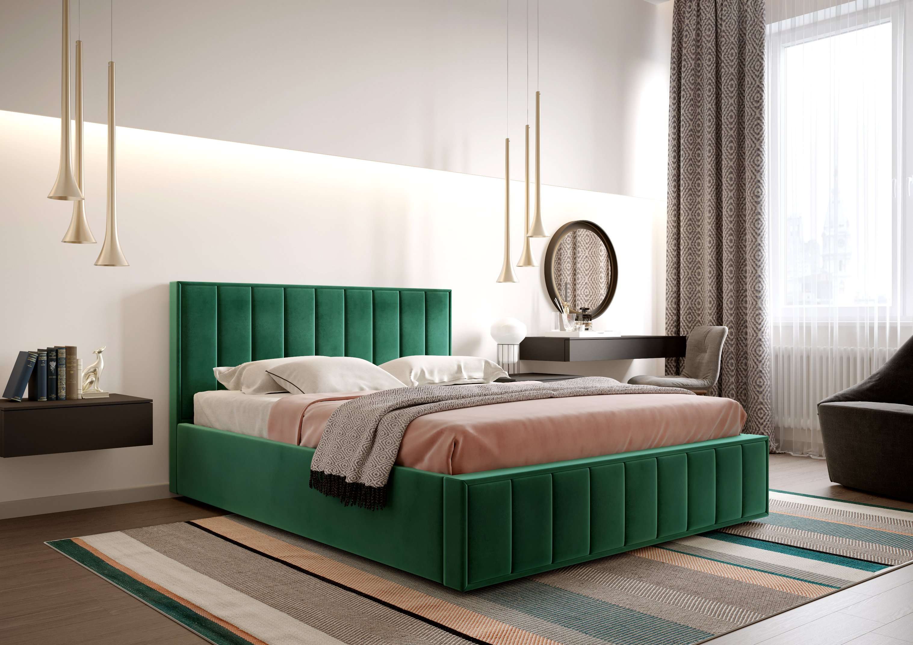 Кровать в мягкой обивке “Женева” является воплощением элегантной изысканности.