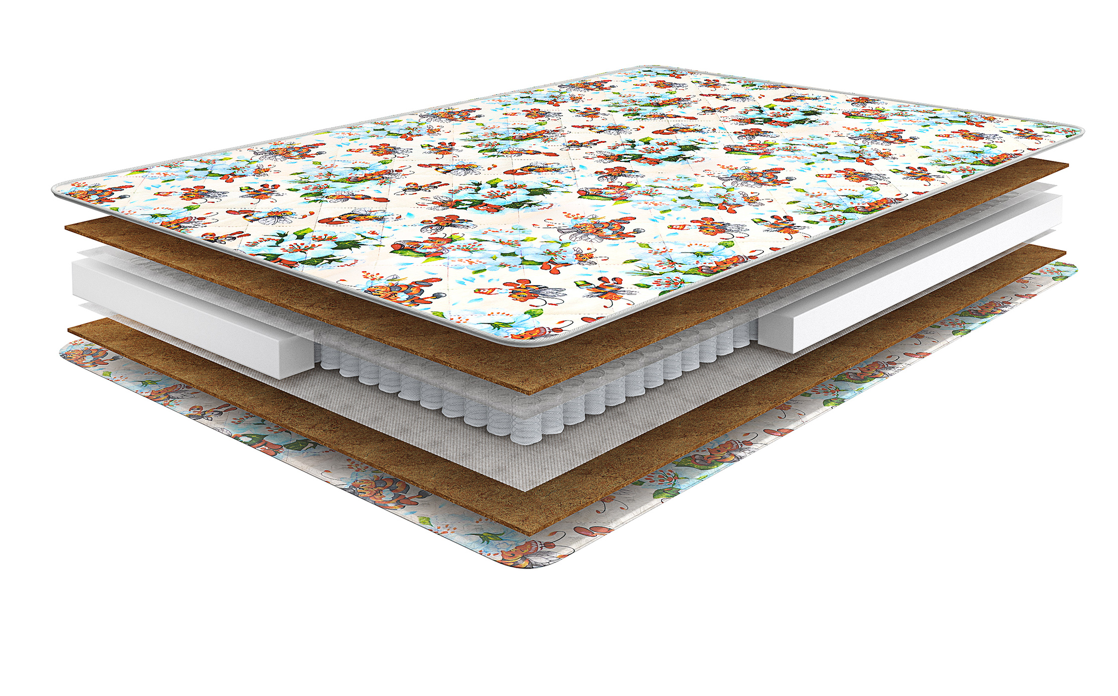 Двухсторонний матрас KIDS SMART TFK – средней жёсткости. Независимые пружины и слой кокосовой койры обеспечивают хорошую поддержку и формирование правильной осанки в течение всего периода пользования матрасом.