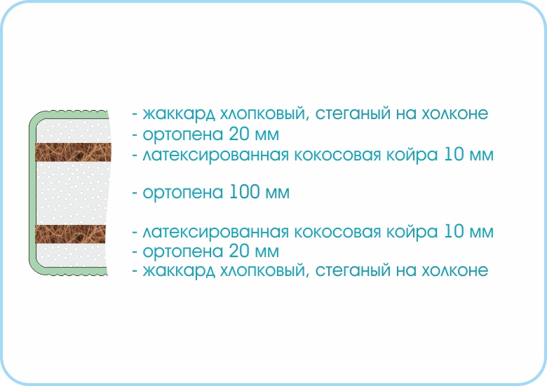 Латексированная кокосовая койра придает дополнительную жесткость и долговечность матрасу.