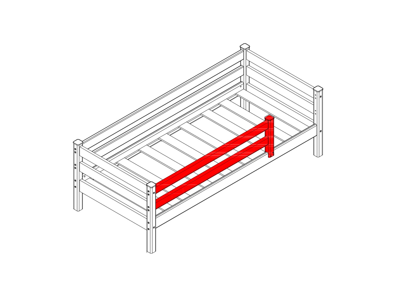 Пакет №4. Передняя защита 3/4 представляет собой защитный элемент для детской кровати “Соня”, который обеспечивает безопасность ребенка во время сна и бодрствования. Он состоит из трех четвертей периметра кровати. Этот пакет изготовлен из массива сосны, который обладают высокой износостойкостью и долговечностью.