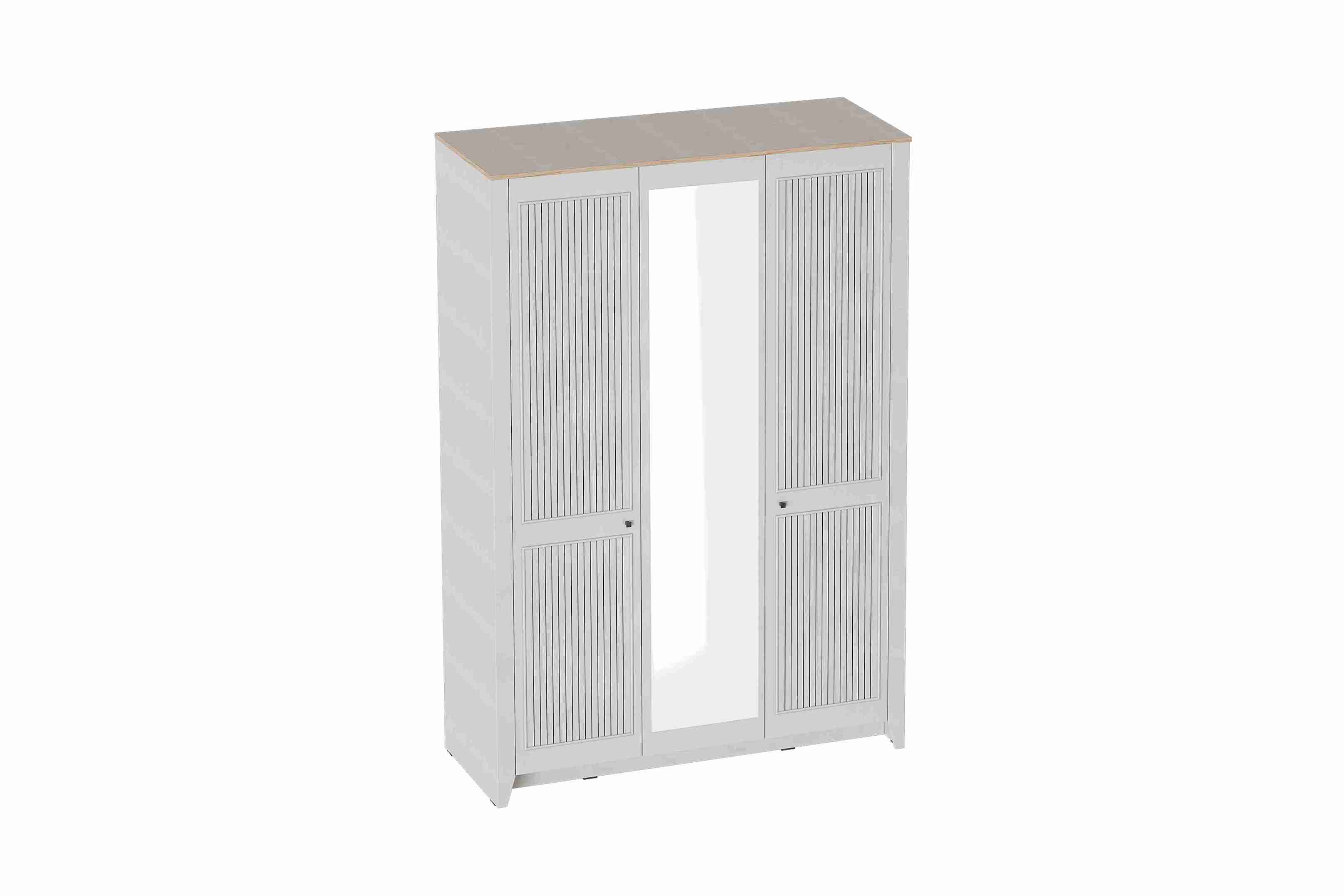 Шкаф 3 дверный Валенсия с зеркалом выполнен из (ЛДСП) в комбинации Дуб натуральный светлый / Персидский жемчуг.