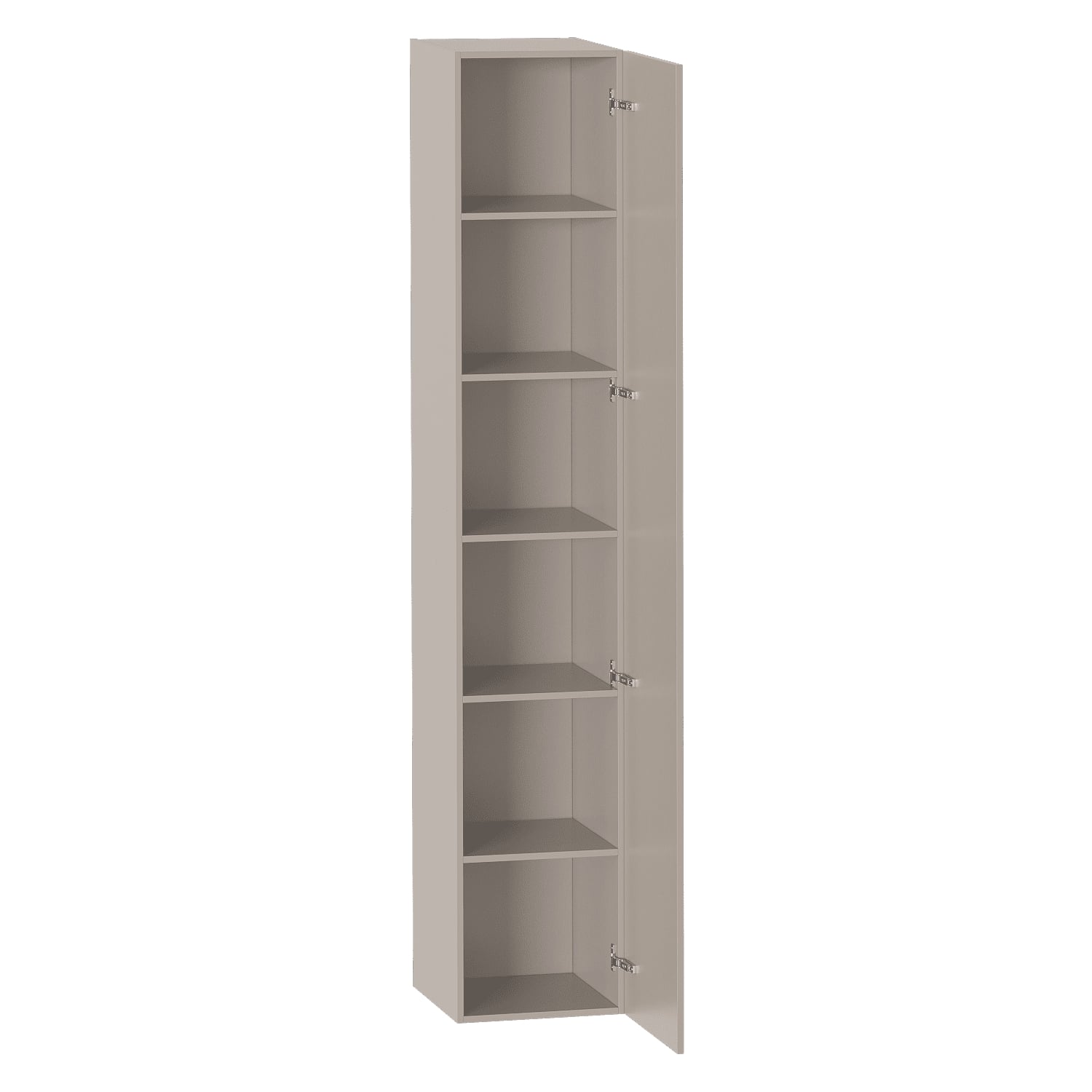 Шкаф однодверный выполнен из ЛДСП цвета Капучино и имеет 6 вместительных полок. Открывание двери возможно на левую и правую сторону. Ручки в форме скобы выполнены из белого матового металла. Все петли - плавного закрывания.