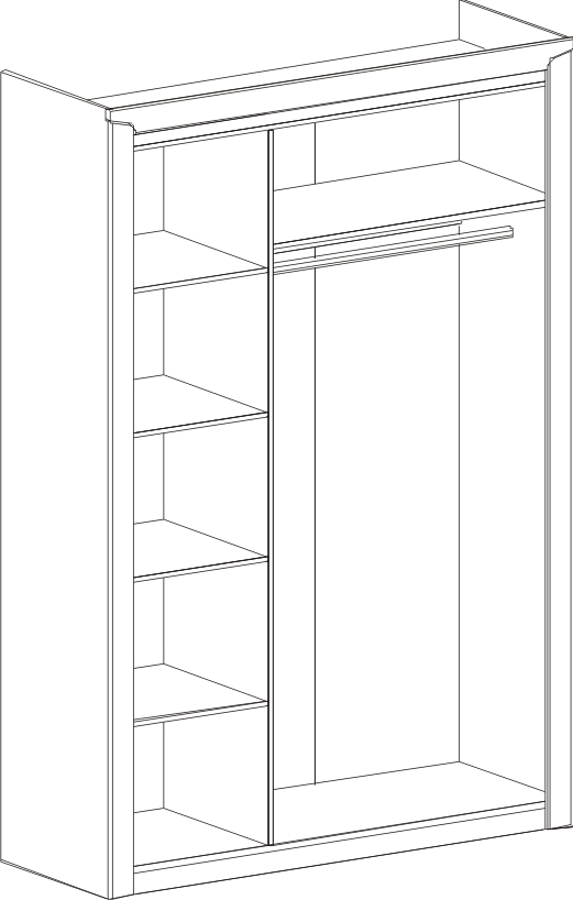 Трехдверный шкаф "Соренто" с зеркалом отлично подойдёт для спальни или прихожей и станет прекрасным дополнением к вашему интерьеру. На боковых дверях имеются декоративные вырезы, выполняющие функцию ручек. Внутреннее пространство шкафа разделено стенкой на два отделения: с полками и продольной стальной штангой, над которой размещается щитовая полка.