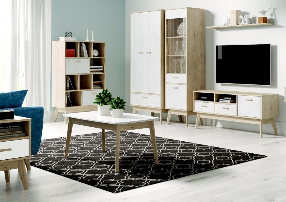 В дизайне отчетливо улавливаются отсылки к эстетике модерна середины 20 века: чистые линии корпуса, использование белого цвета в отделке фасадов, расставленные в стороны высокие стильные опоры, выполненные из массива березы, как и ручки изделия.