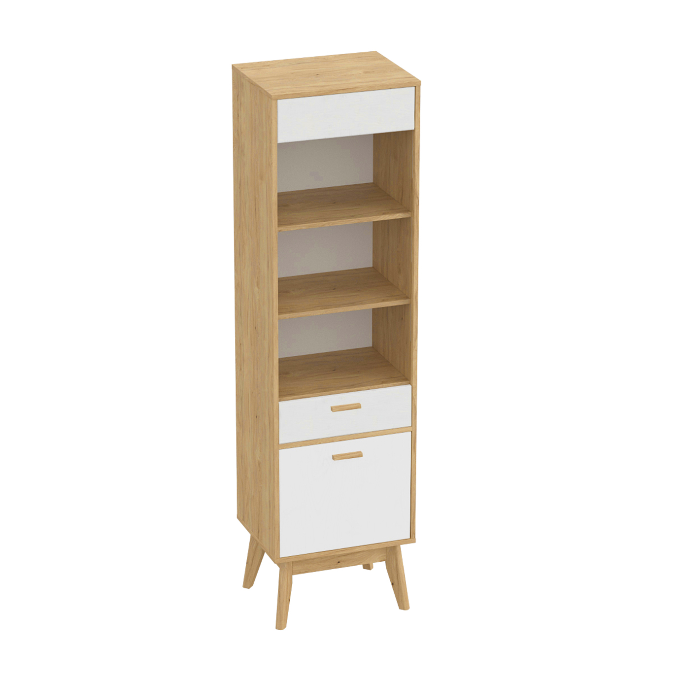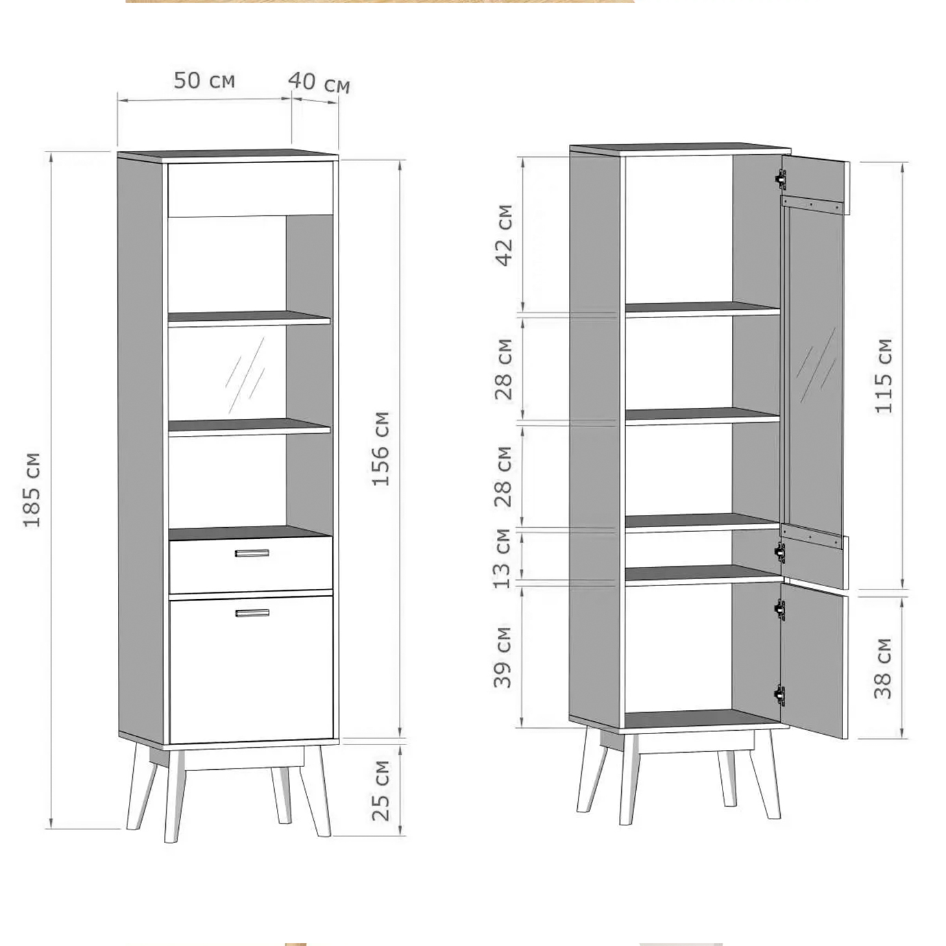 Шкаф-витрина "Калгари" будет одинаково гармонично смотреться как в составе мебельной композиции, так и установленный отдельно. Распашная дверца со стеклом и белоснежным фасадом из МДФ защитит коллекционный фарфор, декоративную посуду или книги от пыли, обеспечивая при этом прекрасный обзор всего содержимого полок. В нижней секции с выдвижным ящиком и глухой дверцей, можно хранить предметы, имеющие более утилитарное назначение.