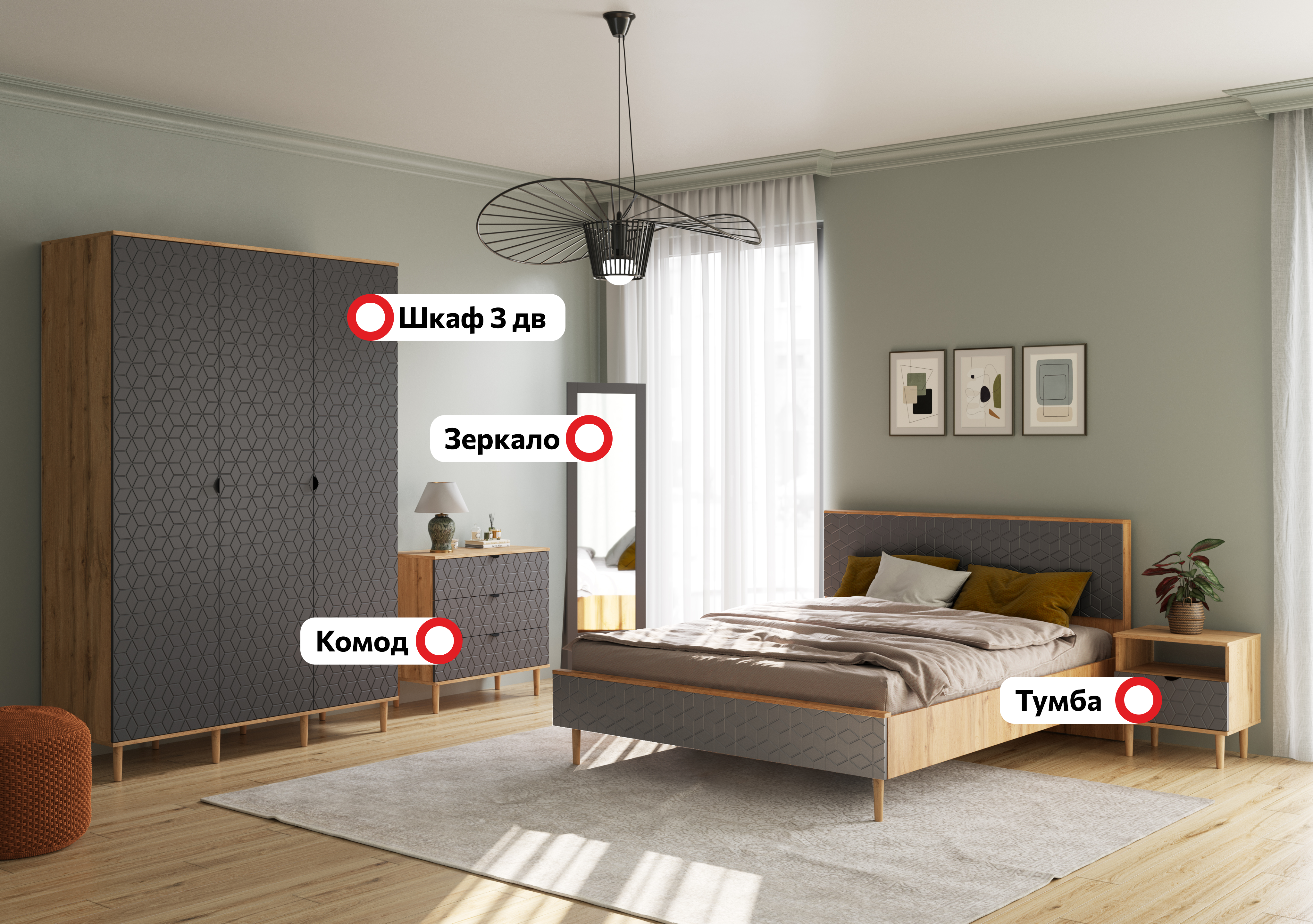 Спальный гарнитур “Денвер” выполнен в шикарном цветовом сочетании “Дуб вотан/Графит”, который привнесет в Ваш дом ощущение стиля, тепла и спокойствия.