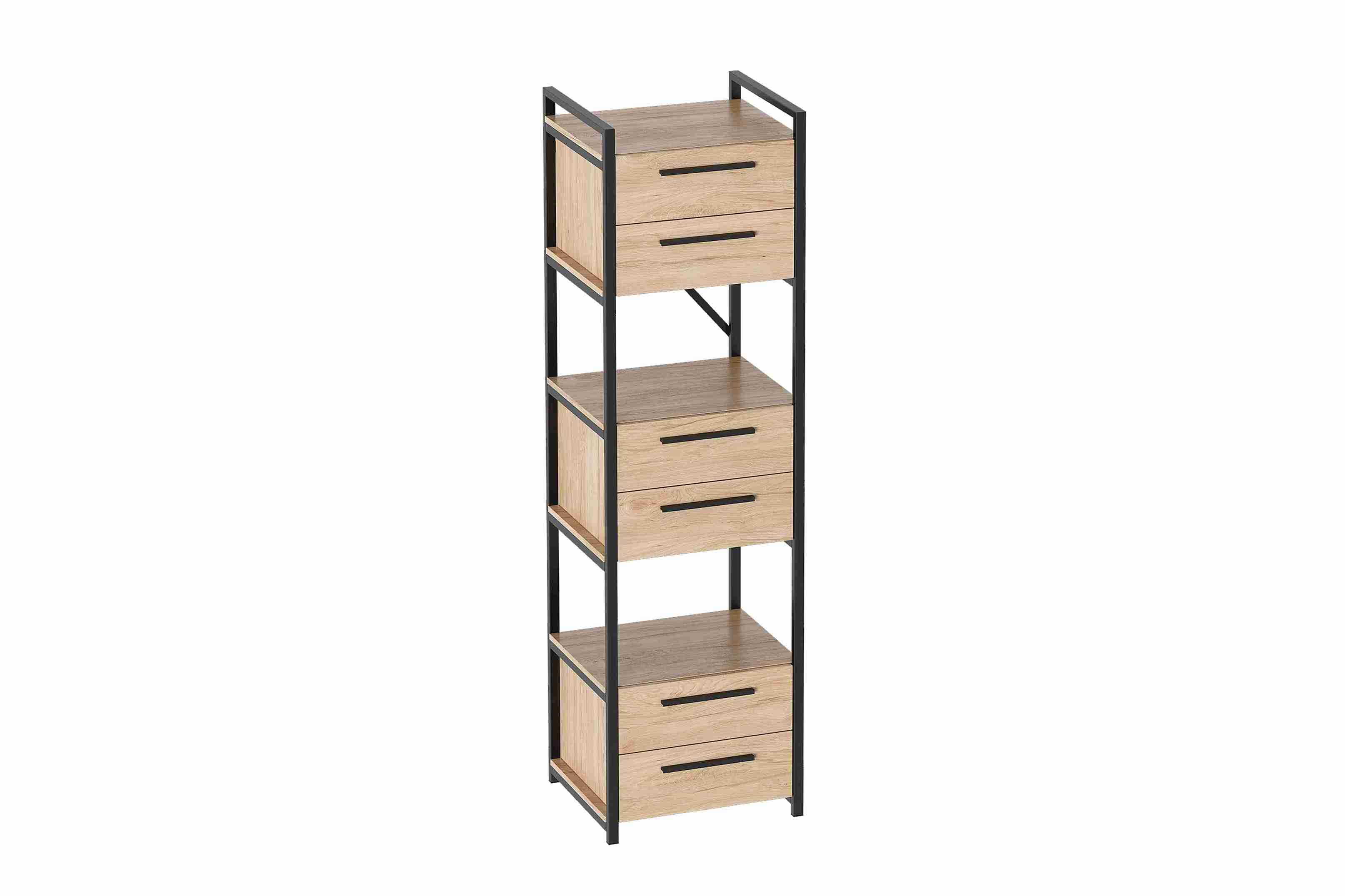 Материал полок – ЛДСП в цвете Дуб натуральный светлый. Металлокаркас с порошковым антикоррозийным напылением выполнен из углеродистой стали толщиной 2 мм, сечением профиля 20*20 и 20*30 мм.