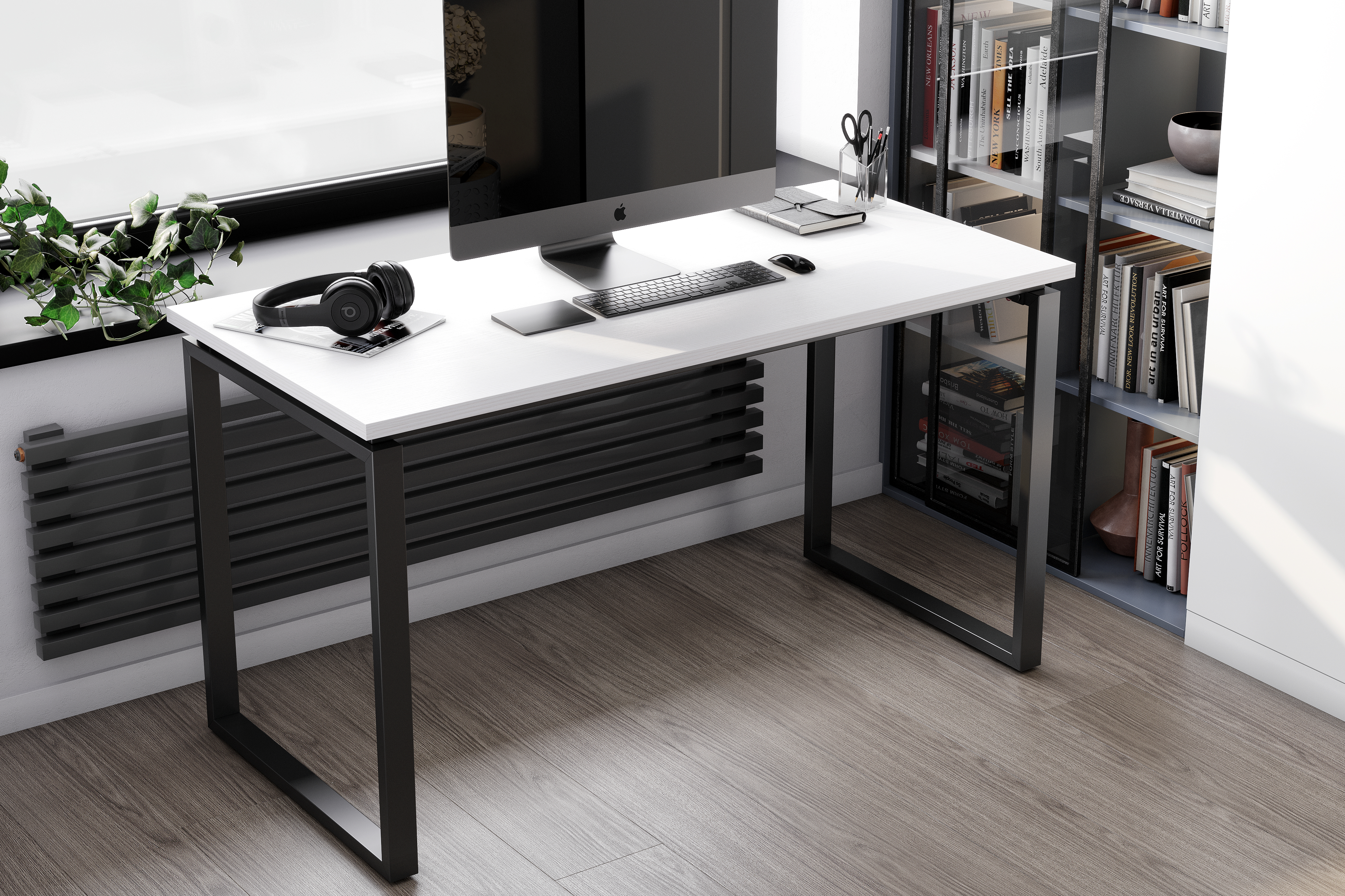 Металлический каркас для стола из прямоугольных замкнутых опор с парящей столешницей. Cкрытые под столешницей связи не позволяют столу шататься как на отдельных ножках