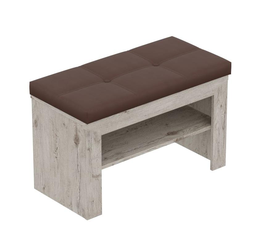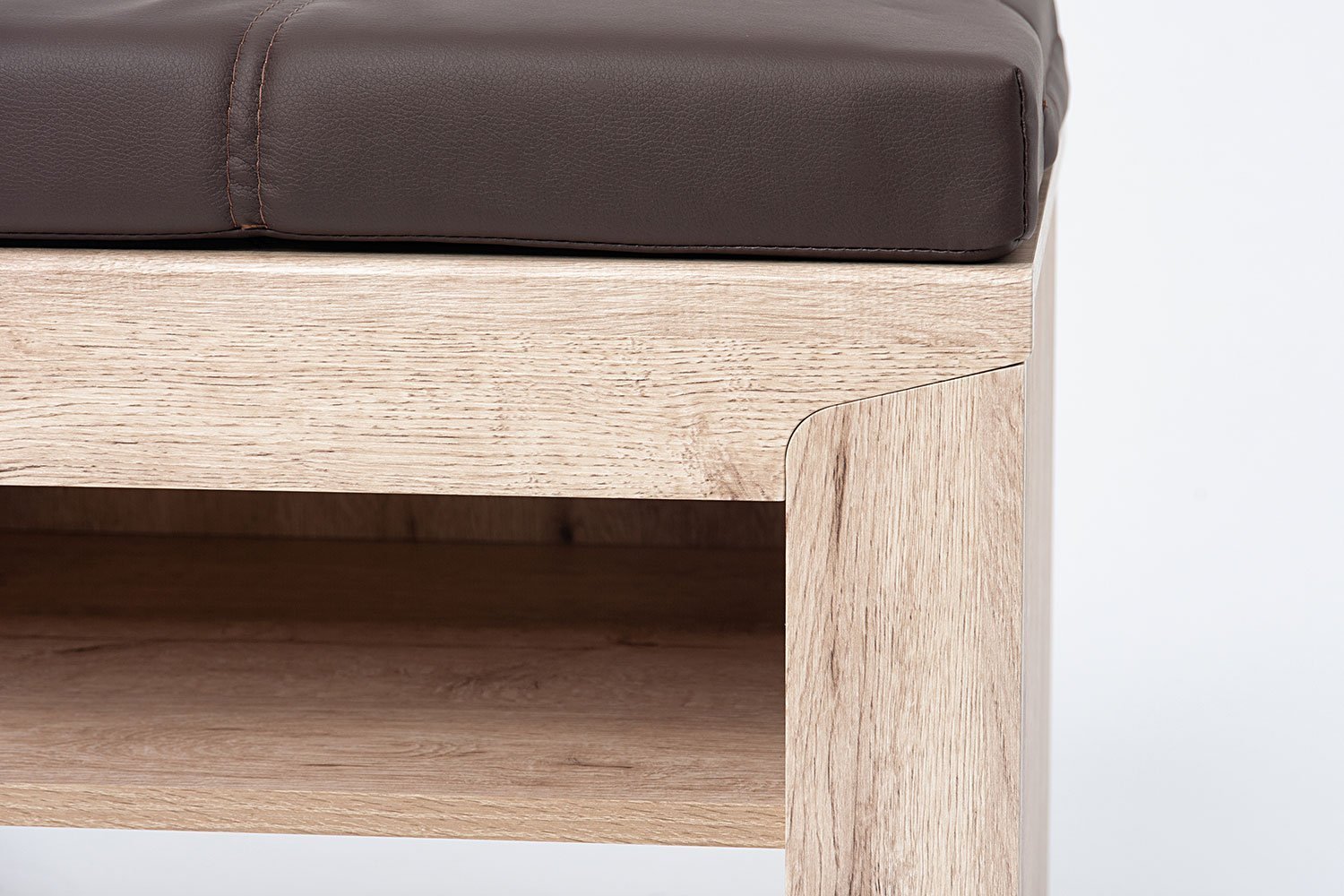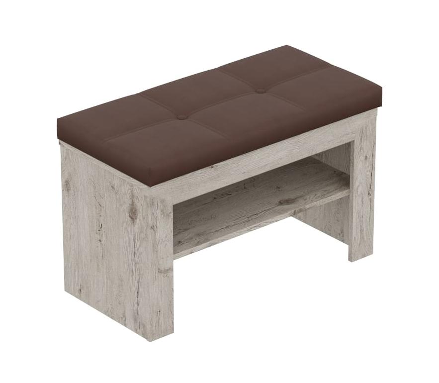 В верхней части тумбы имеется ниша для хранения. Сверху она комплектуется подушкой в цвете "Домус шоколад".