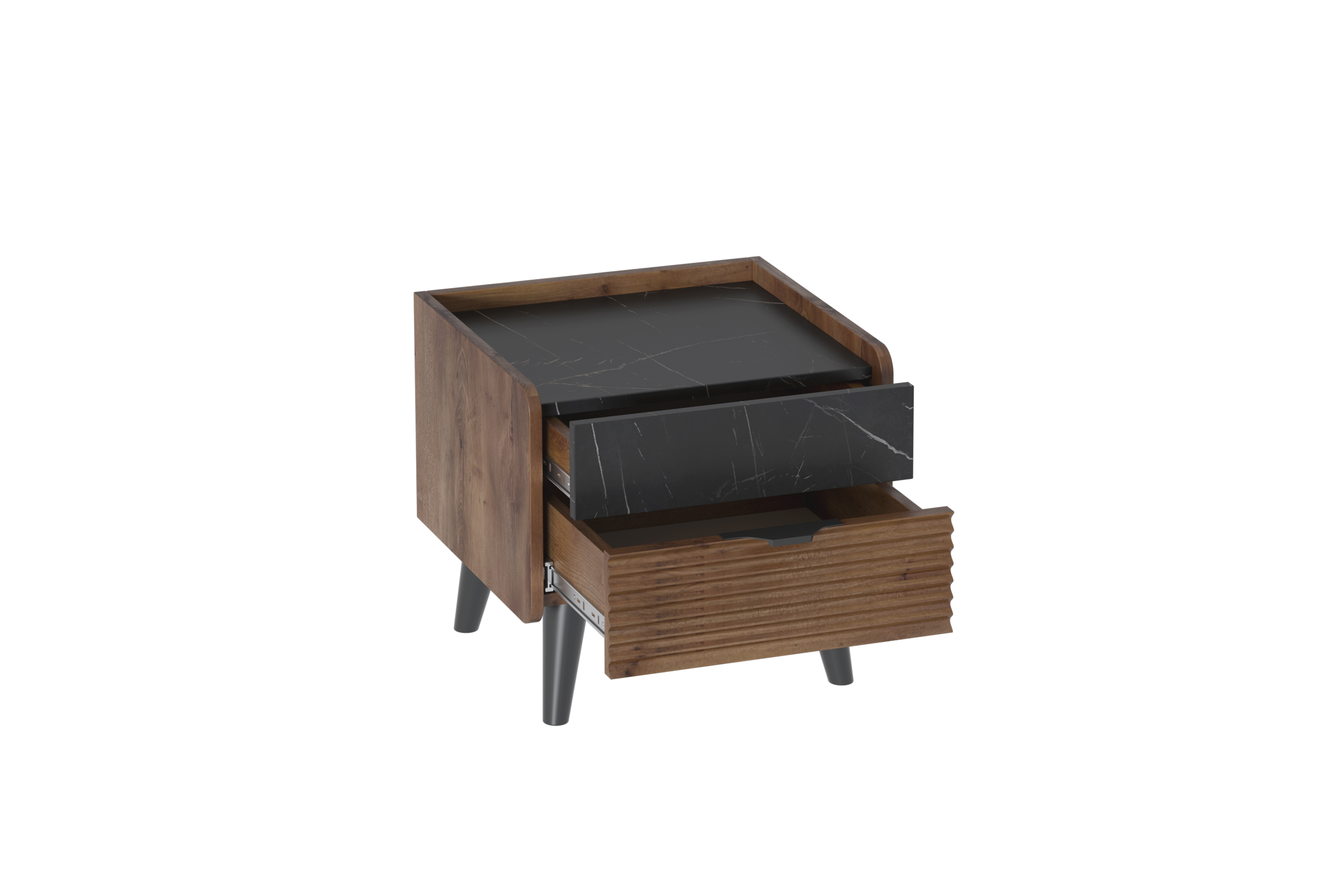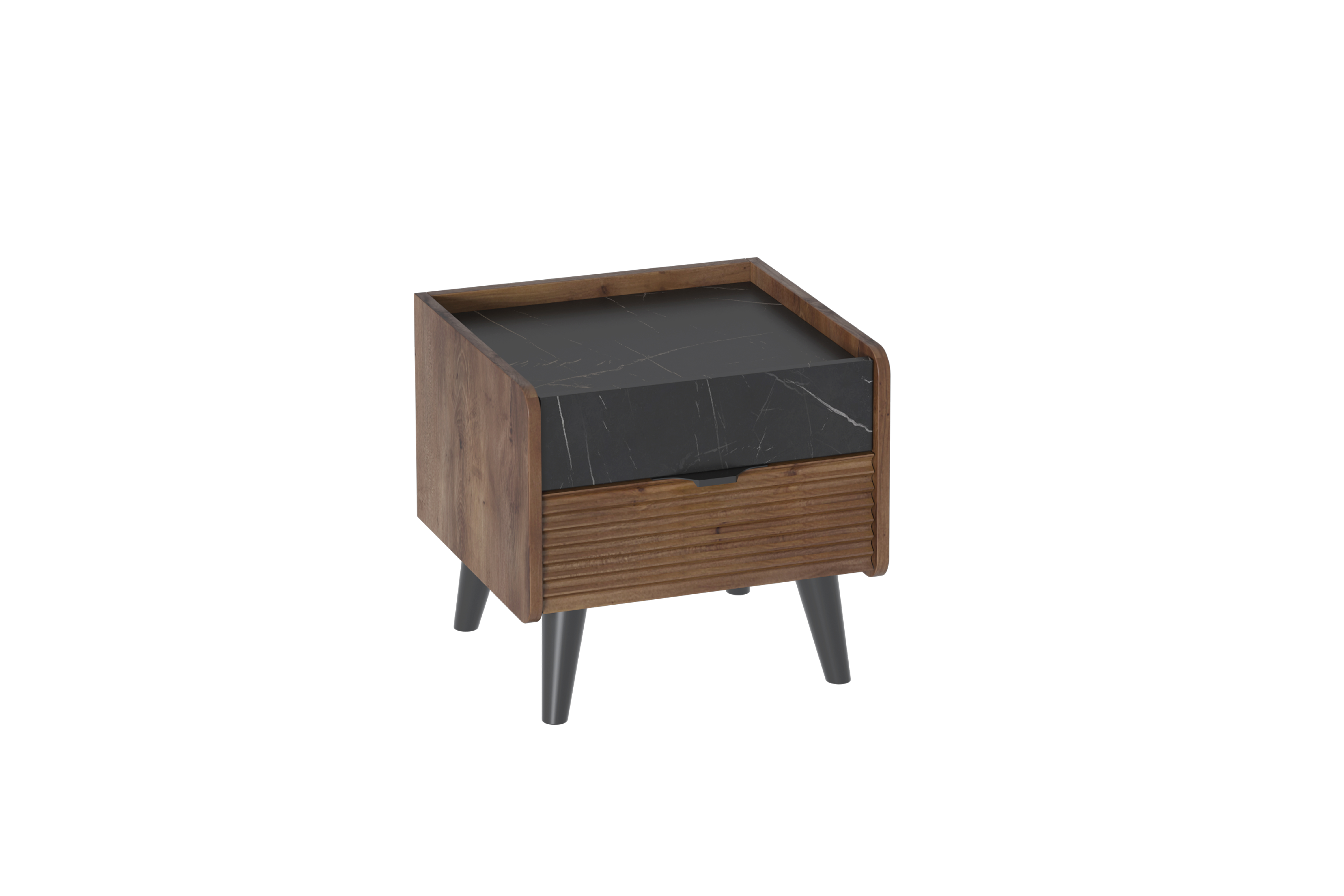 Прикроватная тумба "Браун" имеет выдвижной ящик, для хранения мелких предметов, таких как пульт от телевизора, наушники, зарядные устройства. Открытое отделение тумбы позволяет хранить книги, журналы и другие предметы на видном месте.