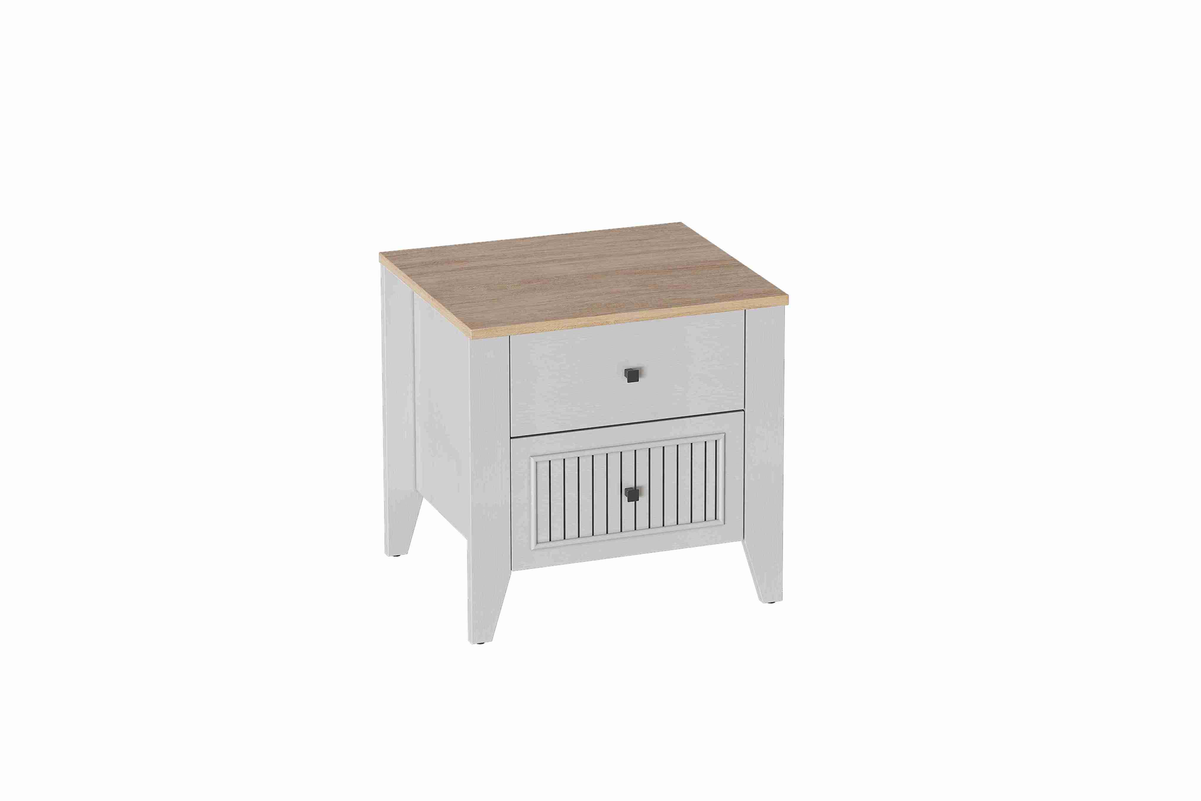 Тумба прикроватная Валенсия выполнена из (ЛДСП) в комбинации Дуб натуральный светлый / Персидский жемчуг.