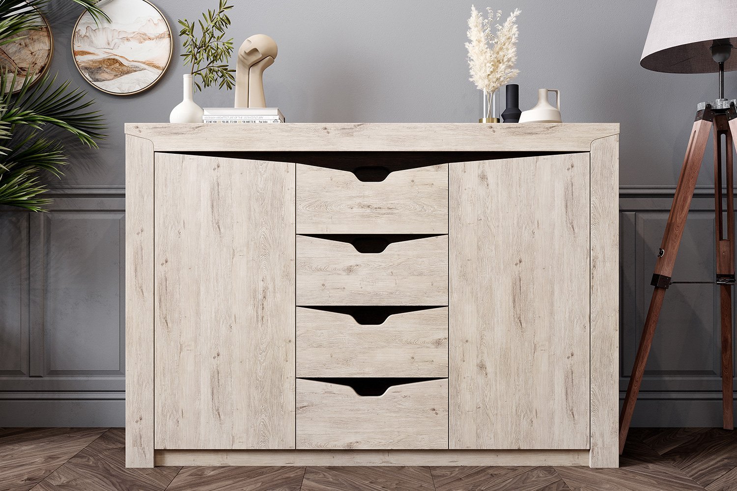 Тумба с 4 ящиками и 2 дверцами "Соренто" спальня Дуб бонифаций
