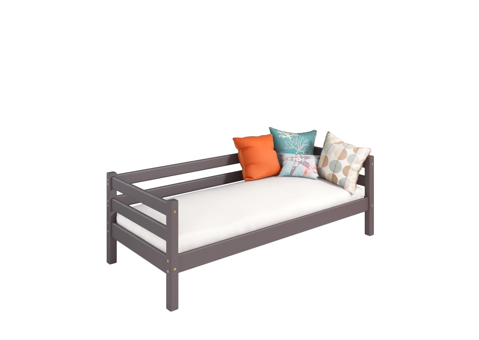 Вариант 2. Кровать "Соня" с задней защитой — один из примеров идеального сочетания практичности, оригинальности и долговечности. Цветовое исполнение подходит сразу для нескольких стилей, а габариты — для комнат разной площади. Мебель для детской создается из безопасных материалов с отличной износостойкостью.