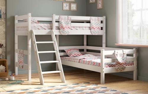 Вариант 8. Угловая кровать "Соня" с наклонной лестницей — один из примеров идеального сочетания практичности, оригинальности и долговечности. Цветовое исполнение подходит сразу для нескольких стилей, а габариты — для комнат разной площади. Мебель для детской создается из безопасных материалов с отличной износостойкостью.