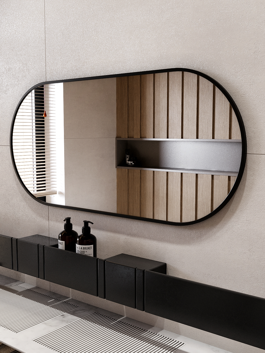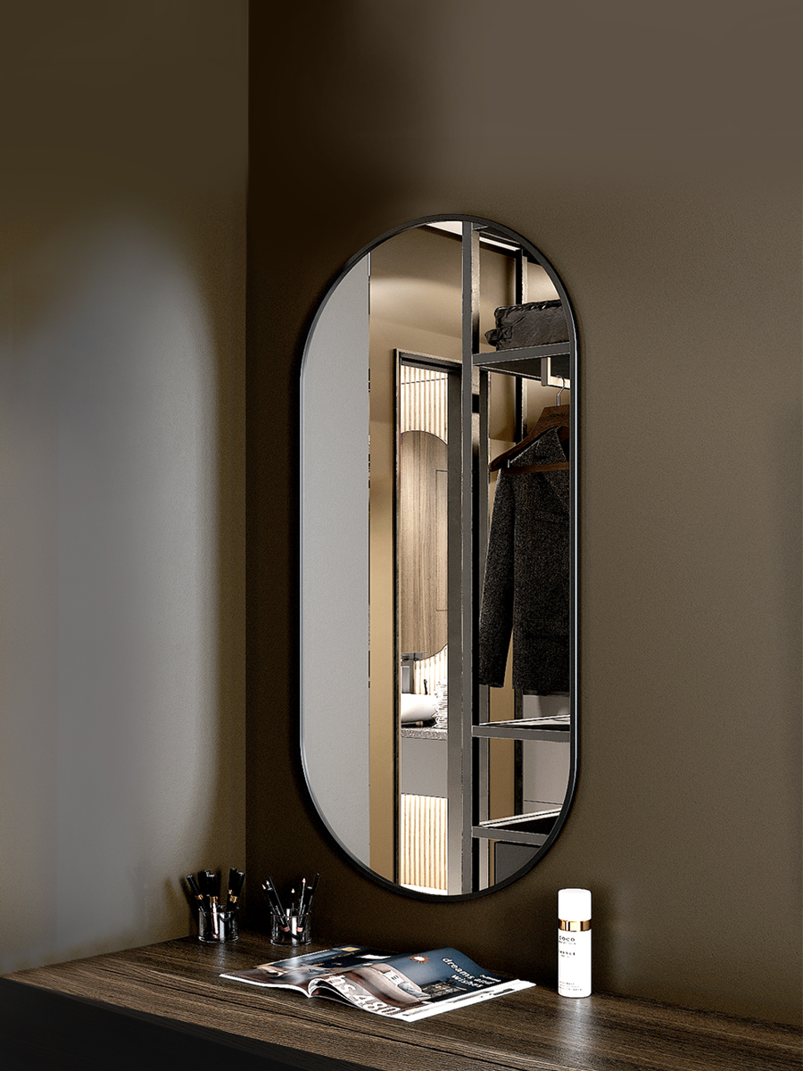 Зеркало можно располагать на стене вертикально или горизонтально.